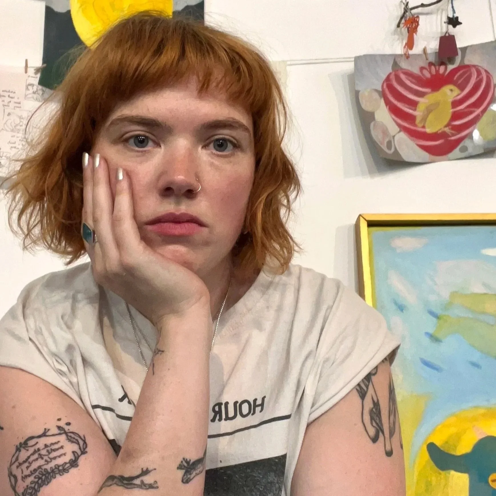 Through personal narrative, figuration and colour I use painting and drawing to play out themes of identity and relationship. I seek out animal figures as archetypes for my own stories, creating dream landscapes where these figures can speak back to me.