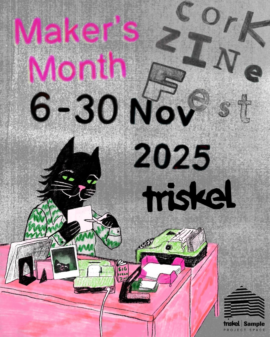 Cork Zine Fest is an annual zine makers event and the first of it’s kind in Ireland. We invite enthusiasts to take part in our maker’s market, events, talks and workshops. Thanks to our partnership with Sample Studios and Triskel Arts Centre, in 2025 and 2026 we have a residency in the Triskel Sample Project Space for the month of November. Here we host workshops, events and a zine library. During the CZF residency month we partner with Crawford Art Gallery on a wide programme of workshops.